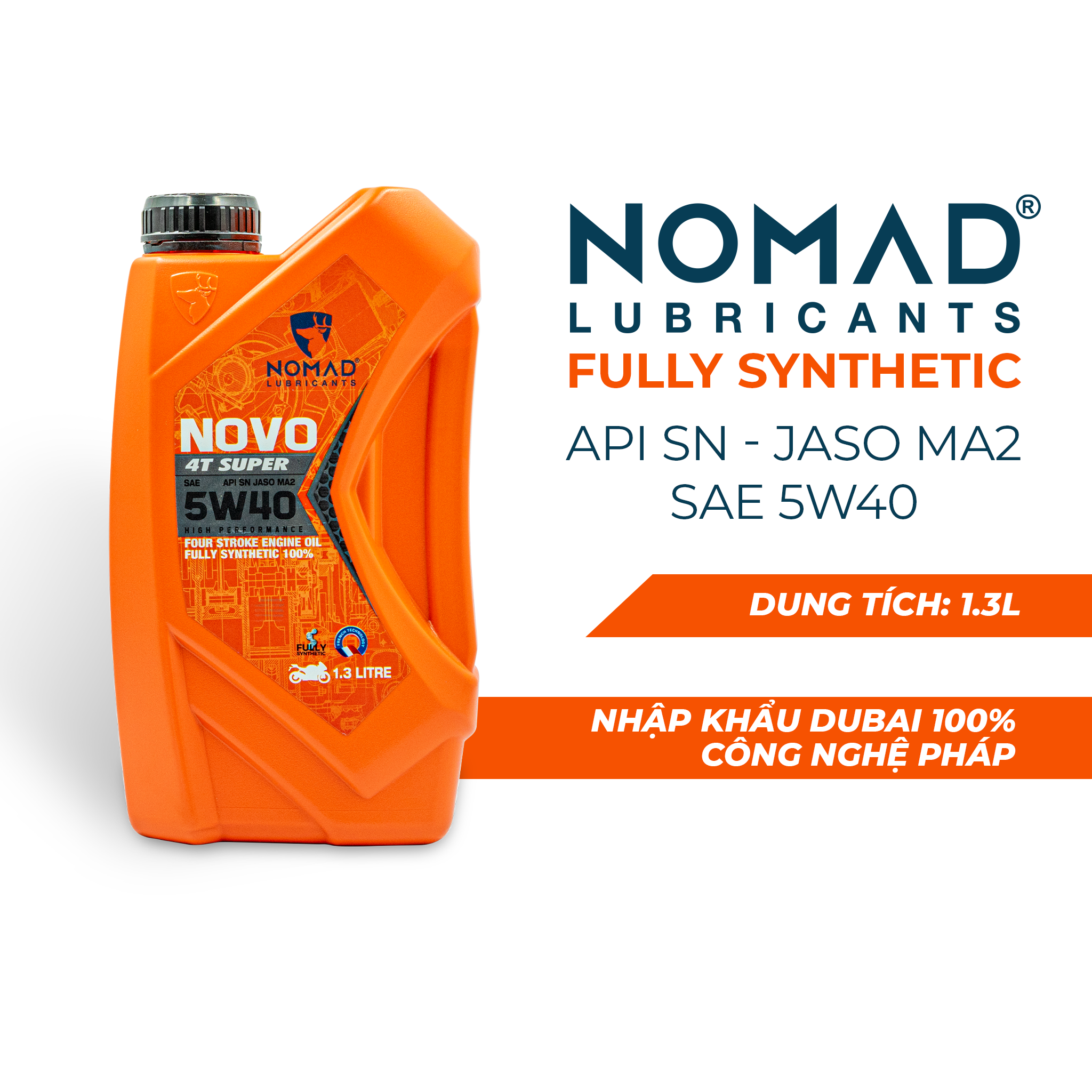Nhớt tổng hợp toàn phần 100% NOMAD - SAE 5W40 - API SN - JASO MA2 – 1L Dầu nhớt xe máy nhập khẩu Dubai – Tổng hợp toàn phần 100% Chuyên dụng dành cho