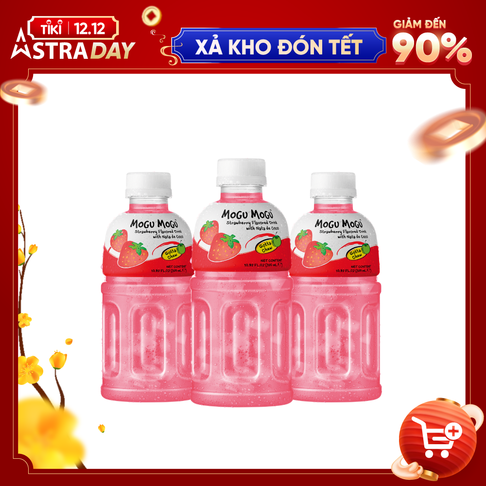 COMBO 3 CHAI NƯỚC UỐNG MOGU MOGU VỊ DÂU VỚI THẠCH DỪA (3 chai x 320ml ) Nước uống thạch dừa Mogu Mogu vị dâu với thành phần là nước ép trái cây và thạch