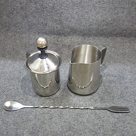 ✨Combo 3 dụng cụ Inox đánh sữa tạo bọt - Ca Inox 600ml