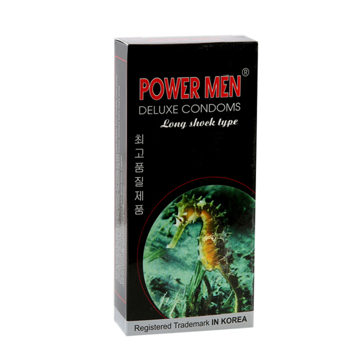 - Hãng sản xuất: Power Men. Sản phẩm: Bao cao su Cá Ngựa Power Men Longer Plus Type Bao cao su Cá Ngựa Power Men là dòng bao cao su chuyên chống xuất tinh sớm của Hàn Quốc giúp hỗ trợ chống xuất tinh sớm ở Nam giới. Là một trong những dòng bao cao su chống xuất tinh sớm tốt nhất trên thị trường hiện nay, Bao cao su Cá Ngựa Power Men Longer Plus Type là giải pháp chống xuất tinh sớm được khá nhiều nam giới sử dụng. Ngoài việc giúp chống xuất tinh sớm tốt, Bao cao su Power Men Longer Plus Type được thiết kế với vô vàn gai nhỏ li ti khắp thân bao giúp tăng kích thích giúp nữ giới hưng phấn hơn, dễ dàng đạt khoái cảm khi yêu.
