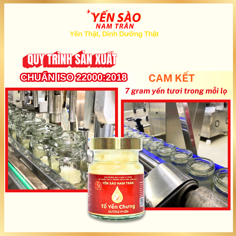 - Số TCB: 001/NAMTRAN/2024 1.THÀNH PHẦN: 7 gram Tổ Yến Tươi ( 1 gram yến khô/ lọ ) đường phèn, nước lọc, canxi lactate. 2.CÔNG DỤNG CỦA YẾN SÀO: