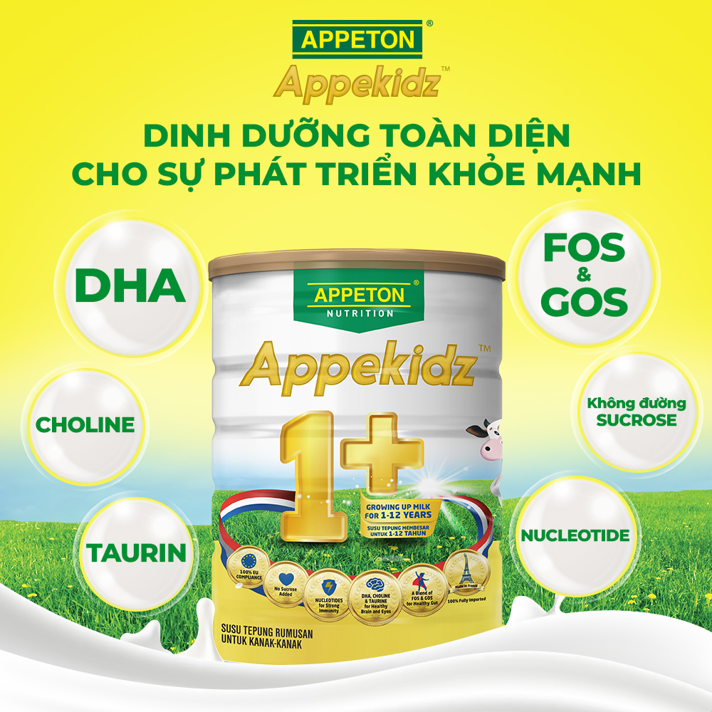 APPEKIDZ là sản phẩm dinh dưỡng công thức dành cho trẻ từ 1 đến 12 tuổi. Công thức độc quyền với hệ thống miễn dịch IMMU gồm Nucleotides, DHA, Taurine, Choline, FOS và GOS, giúp hỗ trợ sự phát triển t...