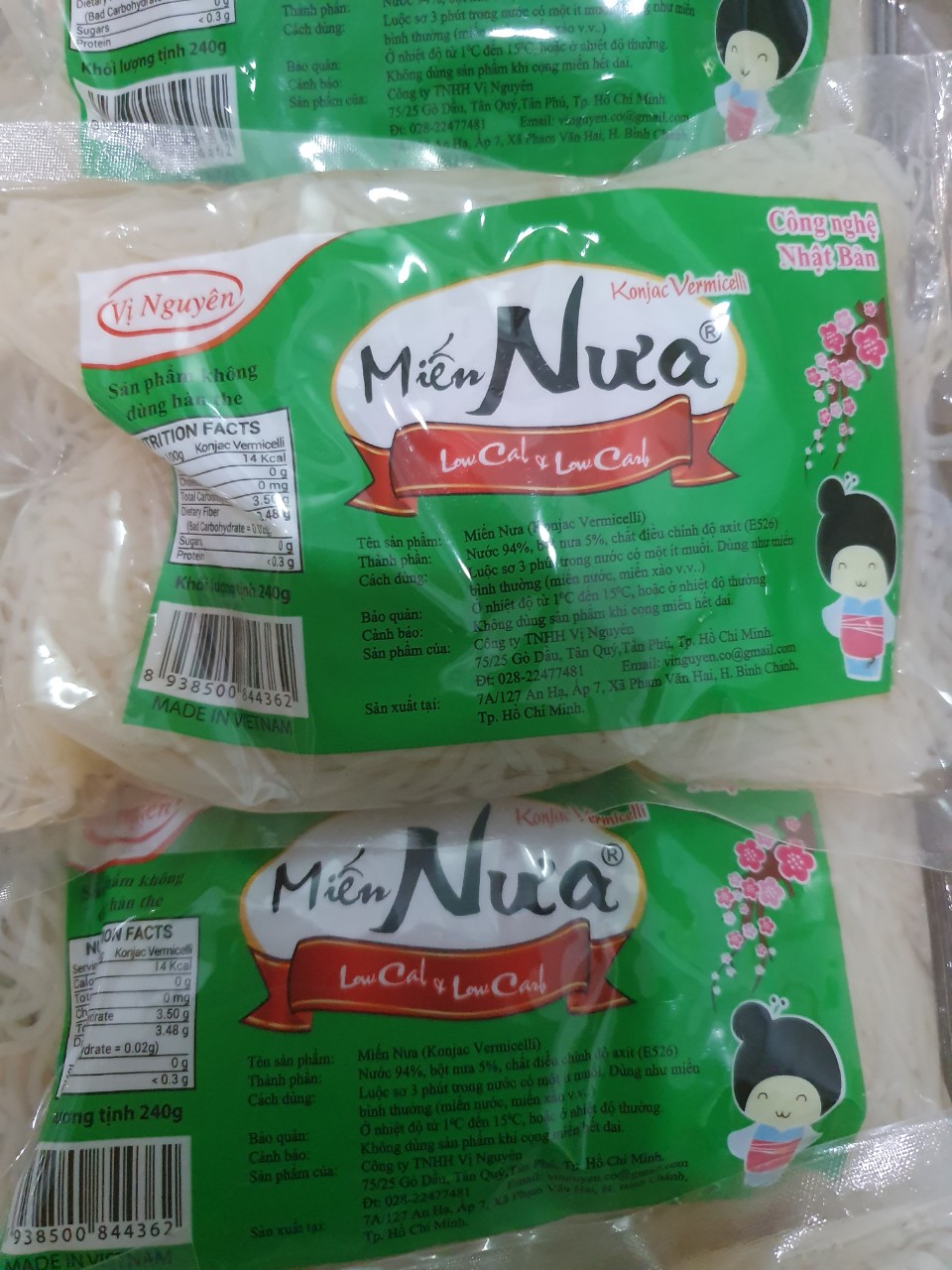 MIẾN NƯA VỊ NGUYÊN 240G - Xuất xứ: Việt Nam - Hạn sử dụng: 6 tháng (gói 240g) - Đóng gói: 240g/gói - Bảo quản: Nơi thoáng mát Những thực phẩm được làm từ bột Glucomanna