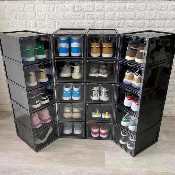 Hộp đựng giày nhựa cứng cao cấp Nắp Trong Suốt Tích Hợp Nam Châm Hít