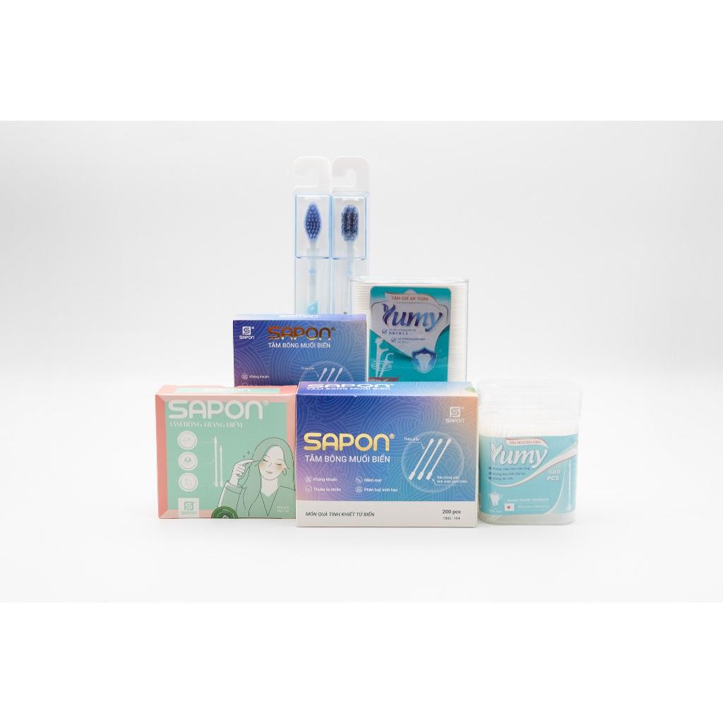✨[Combo] 6 món chăm sóc vệ sinh gia đình – Tăm bông + Tăm chỉ + Tăm nhựa + Bàn chải SAPON