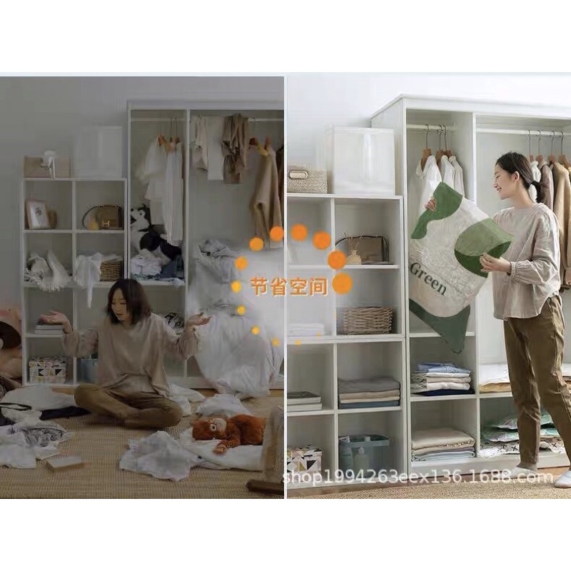 • 2 túi trung (80cm*60cm)cm đựng 5 áo khoác hoặc chăn mỏng