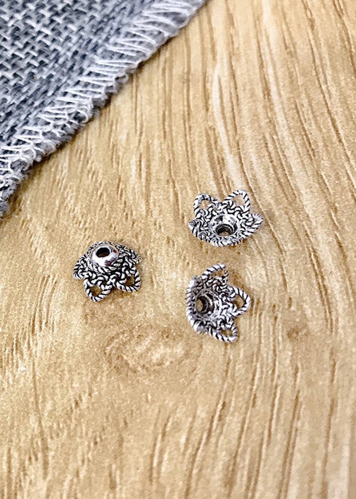CHARM BẠC CHỤP HẠT BỌC HỌA TIẾT HOA VĂN