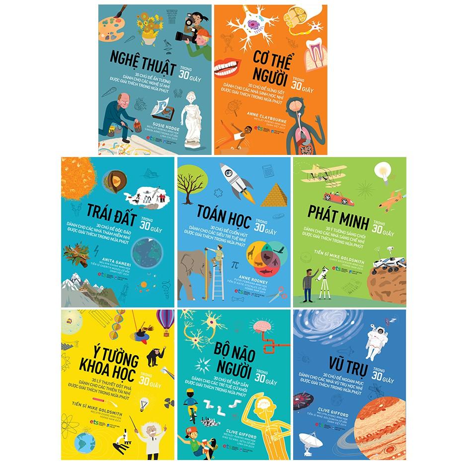 ệ thuật trong 30 giây (Susie Hodge): Con người đã sáng tạo nghệ thuật trong suốt hàng nghìn năm. Họ điêu khắc, vẽ, in, tạo ra những tác phẩm từ nhỏ xíu đến đồ sộ, khổng lồ. Cuốn sách khám phá câu chuyện thú vị của nghệ thuật, từ sơ khai đến hiện đại. Mỗi chương sẽ đề cập đến một thể loại nghệ thuật khác nhau, được sáng tạo ở những thời kỳ khác nhau dưới bàn tay rất nhiều nghệ sĩ.