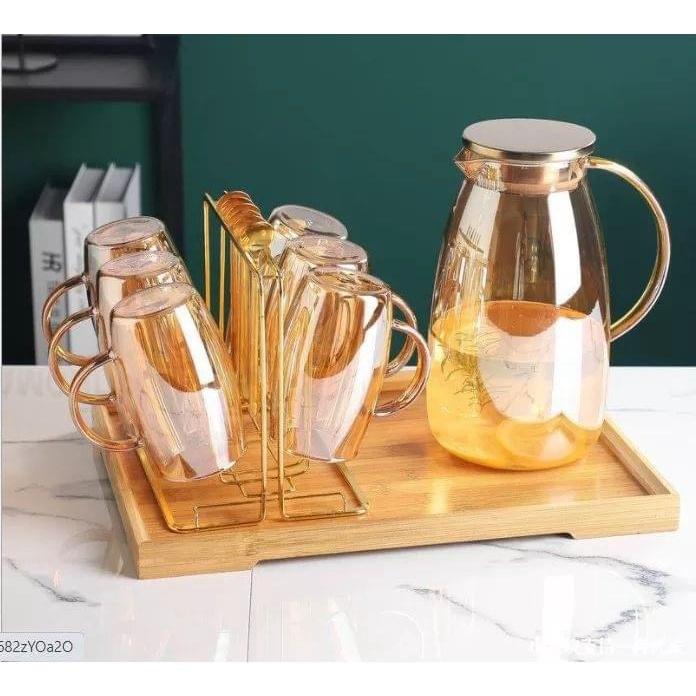 ✨Combo bình đựng nước uống thủy tinh chịu nhiệt cao cấp kèm khay và giá úp cốc