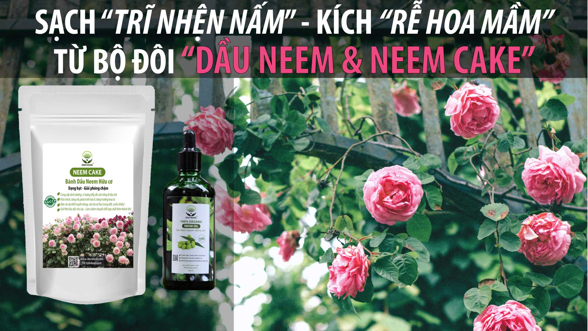 PHÂN BÓN HỮU CƠ DOCNEEM SIÊU KÍCH RỄ - sự kết hợp 3 trong 1, chuyên cho hoa hồng, hoa lan, cây cảnh Thương hiệu Docneem - Bảo hộ tại Cục sở hữu trí tuệ