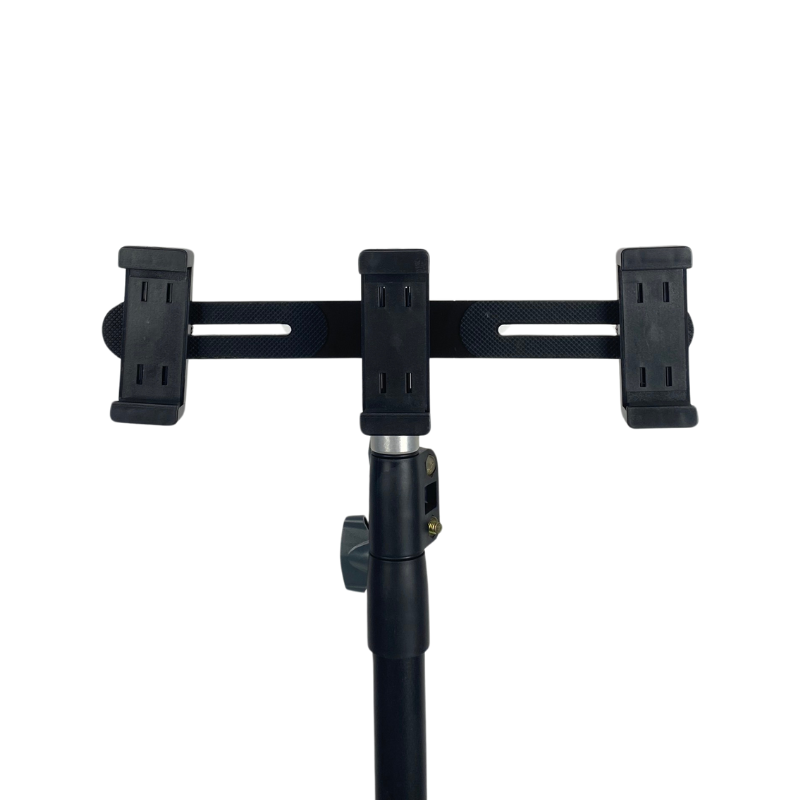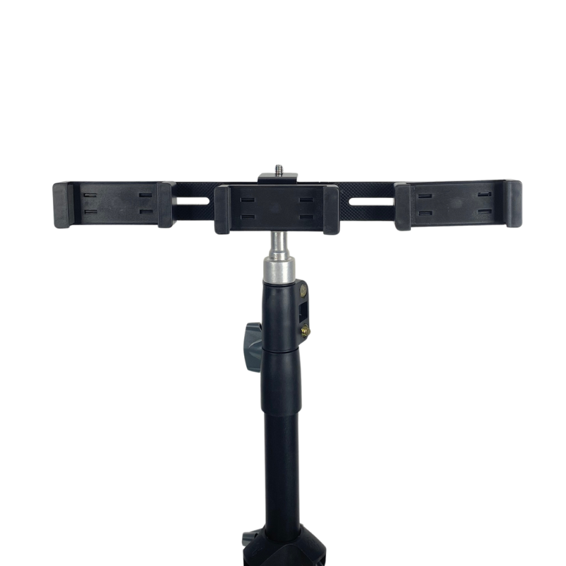 Với phụ kiện này, bạn dễ dàng kẹp 1, 2 hay 3 thiết bị điện thoại để livestream, quay video và chụp ảnh. Ngoài ra có thể xoay ngang dọc điện thoại cho mọi góc quay.