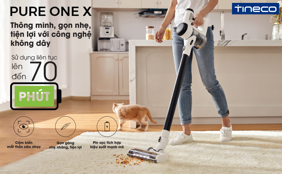 Pure One X là máy hút bụi không dây thông minh được tối ưu hóa cho khả năng hút siêu êm nhưng mạnh mẽ với thời gian chạy kéo dài lên đến 70 phút. Máy