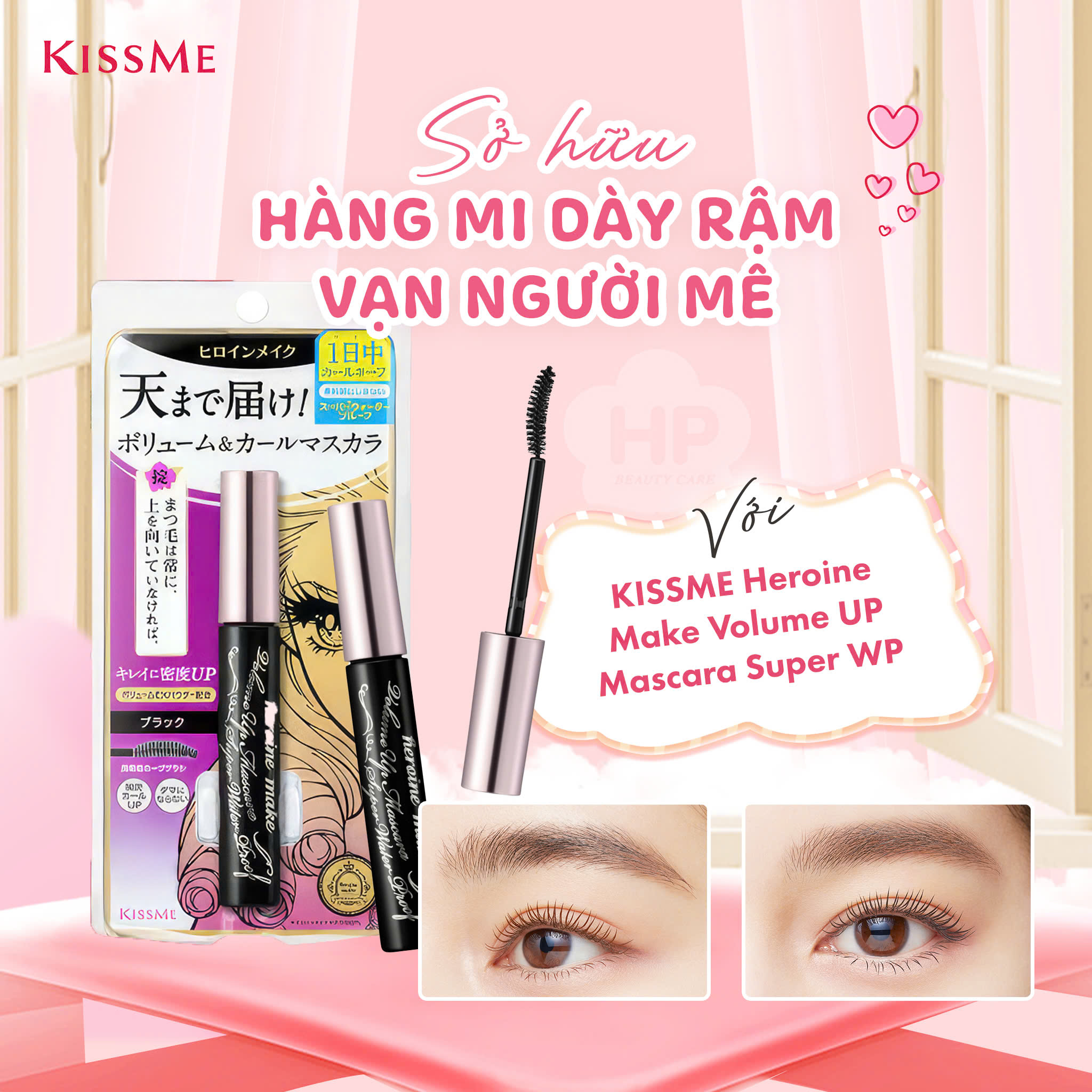 - Mascara Chống Trôi Siêu Bền Giúp Nâng Cong Và Dài Mi Tối Đa Kissme Heroine Make Volume Up Mascara Super WP Thông tin sản phẩm: Số Lô: In trên sản phẩm Xuất Xứ:
