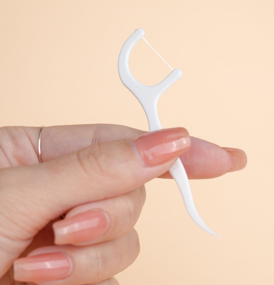 - Dùng các ngón tay giữ thân cây tăm, cho đầu chỉ vào các kẽ răng.
