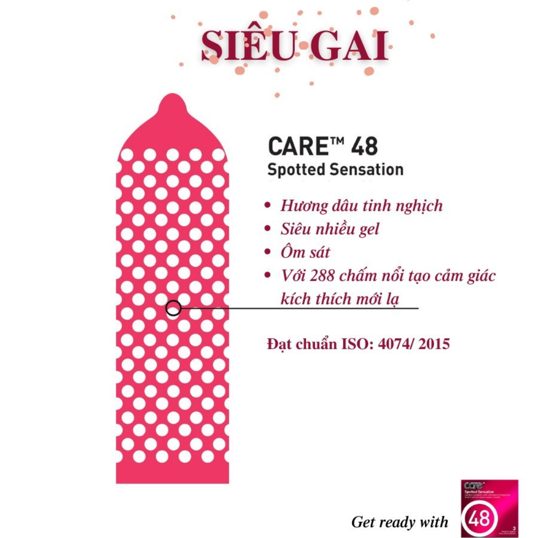 - 1 chiếc bao cao su có gai CARE 48 - bcs gai hương dâu, hạn sử dụng 04/2028