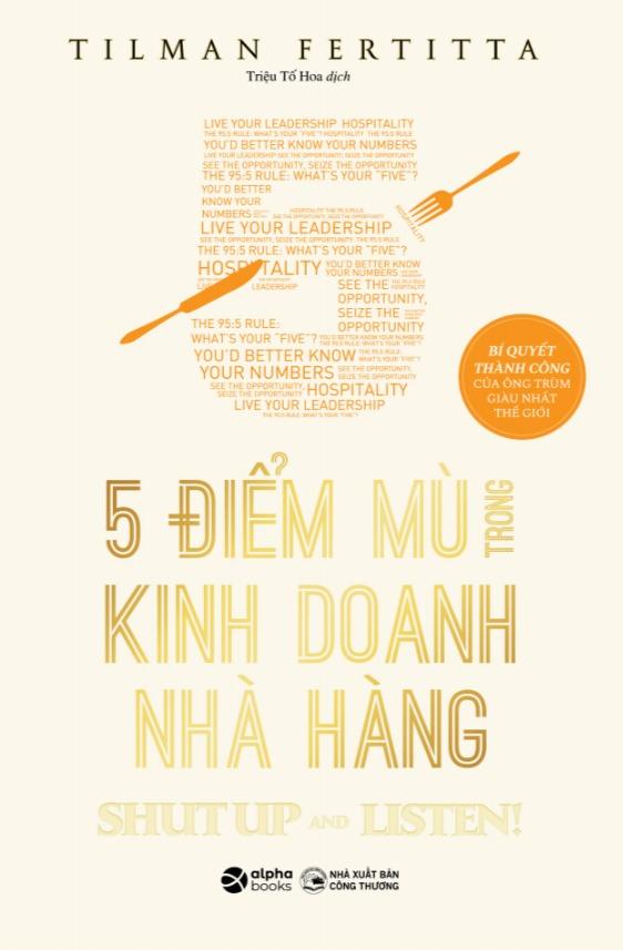 - 5 Điểm Mù Trong Kinh Doanh Nhà Hàng Cuốn sách là bản đúc kết những kinh nghiệm lãnh đạo doanh nghiệp quý giá cũng như cách thức điều hành nhà hàng của Tilman Fertitta - “chủ nhà hảng giàu có nhất trên thế giới” (theo Forbes). Với hãng chục năm kinh nghiệm trong nền công nghiệp nhà hàng, khách sạn, giải trí và cờ bạc, tác giả đã chỉ ra năm điểm mù có thể giết chết doanh nghiệp nhưng thường bị các nhà quản lý bỏ qua, đó là: