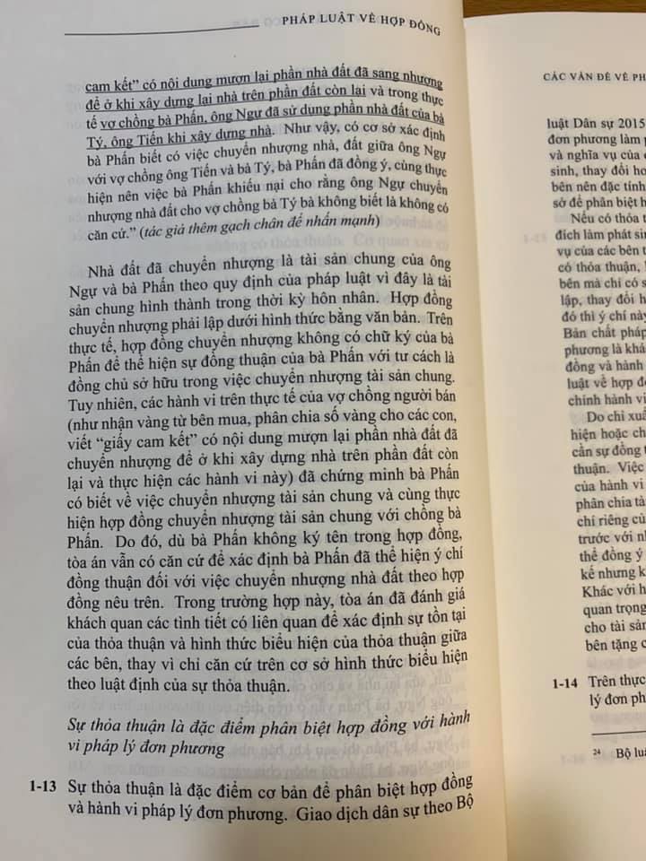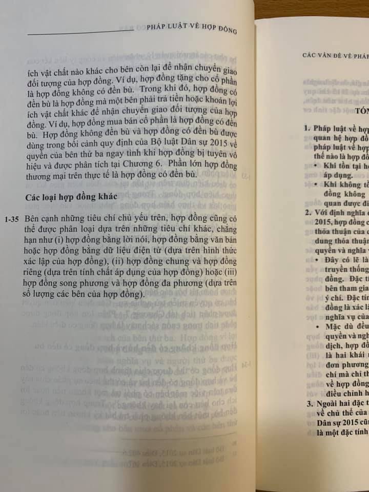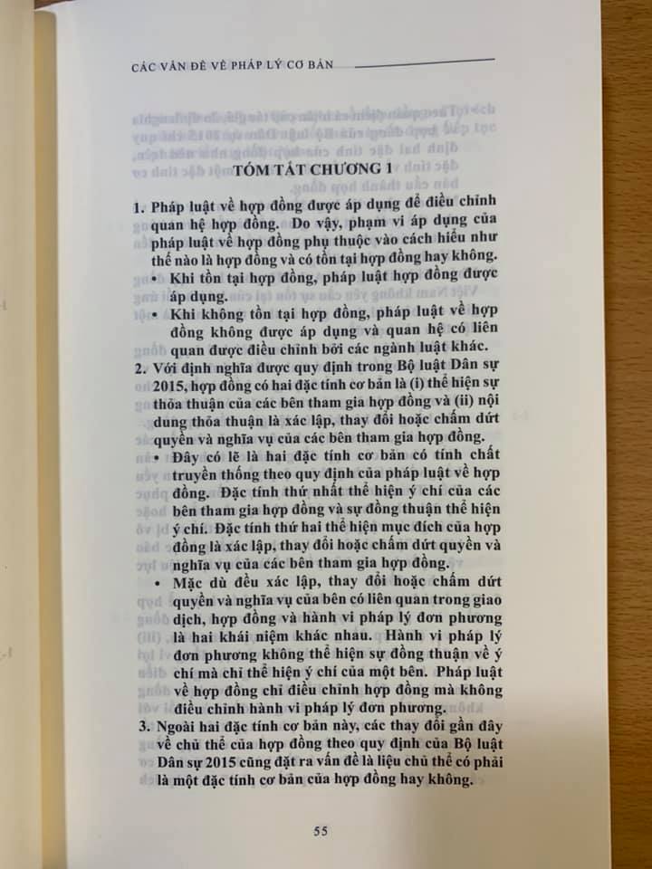 - Pháp Luật Về Hợp Đồng Các Vấn Đề Pháp Lý Cơ Bản (tái bản lần 1, 2024) LS. Trương Nhật Quang Năm xuất bản 2024 Phiên bản 2st Edition Loại bìa Bìa mềm Số trang 900 ISBN: 9786044026060 Nhà phát hành : NXB Dân Trí Giá bìa: 800.000 đ Nội dung sách: Đây là cuốn sách đầy đủ nhất liên quan đến pháp luật về hợp đồng. Trải dài trong gần 900 trang, cuốn sách phân tích các vấn đề liên quan đến (i) giao kết hợp đồng; (ii) hiệu lực hợp đồng; (iii) nội dung hợp đồng; (iv) vi phạm hợp đồng và biện pháp khắc phục; (v) miễn trừ trách nhiệm; (vi) chuyển giao quyền và nghĩa vụ; (vii) quyền của bên thứ ba trong hợp đồng vì lợi ích của bên thứ ba; và (viii) nguyên tắc chọn pháp luật áp dụng và cơ quan giải quyết tranh chấp hợp đồng. Đây là cuốn sách duy nhất trình bày các vấn đề liên quan đến pháp luật về hợp đồng cả từ góc độ lý thuyết và thực tế. Ngoài việc phân tích các quy định của các văn bản pháp luật, cuốn sách cũng phân tích các án lệ và bản án. Đây là cuốn sách giúp các luật sư hành nghề có thể tham khảo khi tư vấn trong các giao dịch thương mại có yếu tố nước ngoài. Cuốn sách tập trung phân tích phạm vi mà các bên có thể thỏa thuận trong hợp đồng để phân bố rủi ro. Đây là cuốn sách duy nhất có hệ thống tra cứu đầy đủ giúp người đọc tiện tra cứu. Cuốn sách có (i) bảng tra cứu từ khóa; (ii) bảng tra cứu án lệ, bản án và quyết định; và (iii) danh sách các tài liệu trích dẫn.