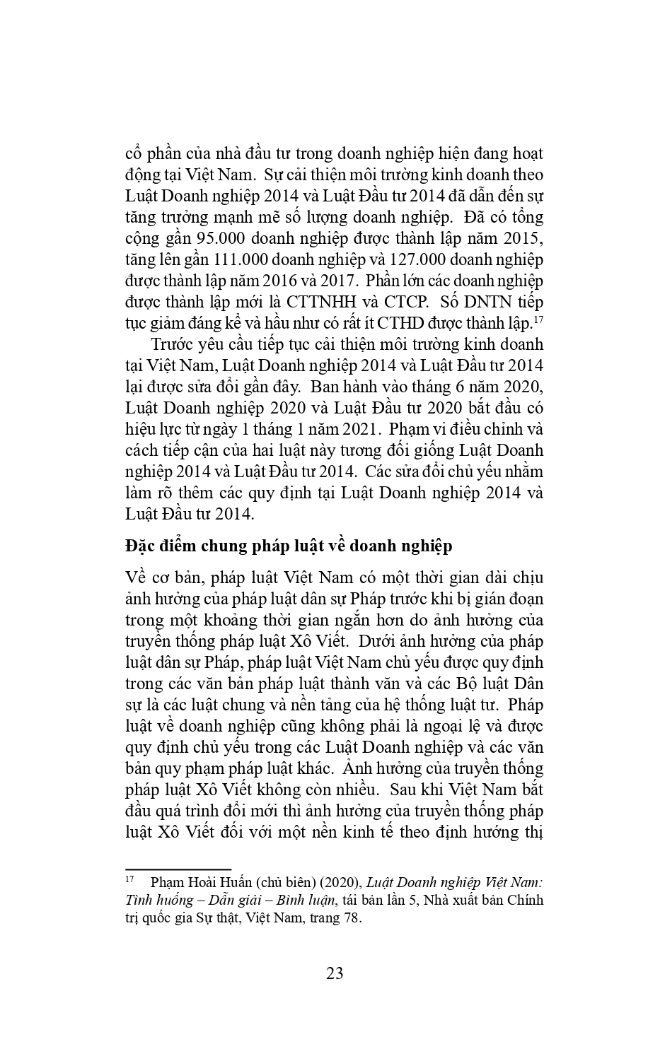Mua tại Tiktok- Pháp luật về doanh nghiệp – Các vấn đề pháp lý cơ bản (tái bản lần 1 năm 2024) Tác giả: Trương Nhật Quang Nhà xuất bản: Dân Trí Công ty phát hành: Công ty TNHH Sách Á Châu Kích thước: 15.5x 24.5 cm Số trang: 1100 trang Ngày phát hành: 3.2024 Hình thức bìa: Bìa mềm Giá bìa: 900.000 đ Lời giới thiệu: Cuốn sách đầu tiên nghiên cứu một cách có hệ thống các vấn đề pháp luật về doanh nghiệp của Việt Nam từ cả góc độ lý thuyết và thực tiễn, tập trung vào các giao dịch mua bán doanh nghiệp và tài chính-ngân hàng có yếu tố nước ngoài dựa trên kinh nghiệm hành nghề thực tế của luật sư Trương Nhật Quang. Công ty luật YKVN nơi tác giả làm việc là một trong các công ty luật hàng đầu Việt Nam và tham gia tư vấn trong nhiều giao dịch giao dịch mua bán doanh nghiệp và tài chính-ngân hàng có yếu tố nước ngoài quan trọng nhất trên thị trường. Đây là ấn bản sửa đổi lần đầu của cuốn sách được luật sư Trương Nhật Quang xuất bản năm 2016. Được viết trong trong 4 năm qua, cuốn sách cập nhập các thay đổi luật từ năm 2016, đặc biệt là Luật Doanh nghiệp năm 2020, Luật Đầu tư năm 2020, Luật Chứng khoán năm2019, Bộ luật Hình sự năm 2015 (được sửa đổi, bổ sung năm 2017) và nhiều văn bản pháp luật quan trọng khác. Do vậy, nội dung cuốn sách gần như được cập nhật lại mới hoàn toàn để phân tích khung pháp lý mới đang áp dụng tại thời điểm hiện nay. Ngoài việc phân tích các văn bản pháp luật, cuốn sách cũng phân tích các án lệ và nhiều bản án, quyết định và phán quyết của tòa án và trọng tài mà tác giả đã sưu tầm trong thời gian qua. Đặc biệt cuốn sách phân tích rất nhiều bản án phúc thẩm và giám đốc thẩm của các tòa án tại Hà Nội, Đà Nẵng và Thành phố Hồ Chí Minh và Tòa án Nhân dân Tối cao. Do vậy, nhiều vấn đề pháp lý cơ bản trình bày trong cuốn sách được phân tích từ góc độ thực tiễn xét xử tại tòa án. Cuốn sách bao gồm nhiều sơ đồ và bảng tóm tắt để giúp người đọc dễ hiểu hơn các vấn đề pháp lý và cơ cấu giao dịch được trình bày trong cuốn sách. Ngoài ra, để giúp người đọc tiện tra cứu, cuốn sách có (i) bảng tra cứu từ khóa, (ii) bảng tra cứu án lệ, bản án và quyết định và (iii) danh sách các tài liệu trích dẫn. Trải dài trong hơn 1000 trang, cuốn sách phân tích các vấn đề pháp lý cơ bản liên quan đến việc thành lập, tổ chức quản lý và hoạt động của doanh nghiệp. Kết cấu của cuốn sách gồm hai mươi chương và chia làm năm phần, tập trung vào hai hình thức doanh nghiệp thông dụng nhất là công ty trách nhiệm hữu hạn (CTTNHH) và công ty cổ phần (CTCP). • Phần I (từ Chương 1 đến Chương 9) phân tích các vấn đề pháp lý chung và áp dụng cho mọi loại hình doanh nghiệp. • Phần II (từ Chương 10 đến Chương 12) tập trung vào các vấn đề pháp lý liên quan đến tư cách và quyền của thành viên CTNHH và cổ đông CTCP. • Phần III (từ Chương 13 đến Chương 15) trình bày các vấn đề pháp lý về quản trị CTTNHH và CTCP. • Phần IV (Chương 16 và Chương 17) trình bày các vấn đề pháp lý liên quan đến huy động vốn dưới hình thức phát hành chứng khoán và biện pháp bảo đảm. • Phần V (từ Chương 18 đến Chương 20) trình bày các vấn đề pháp lý áp dụng riêng cho công ty đại chúng. Cuốn sách được viết chủ yếu dành cho luật sư, người tham gia công tác giảng dạy, sinh viên luật và người quản lý doanh nghiệp mong muốn tìm hiểu các vấn đề pháp lý về doanh nghiệp. Đặc biệt, cuốn sách giúp các luật sư hành nghề có thể tham khảo khi tư vấn trong các giao dịch doanh nghiệp, đặc biệt là các giao dịch mua bán doanh nghiệp và tài chính-ngân hàng có yếu tố nước ngoài.