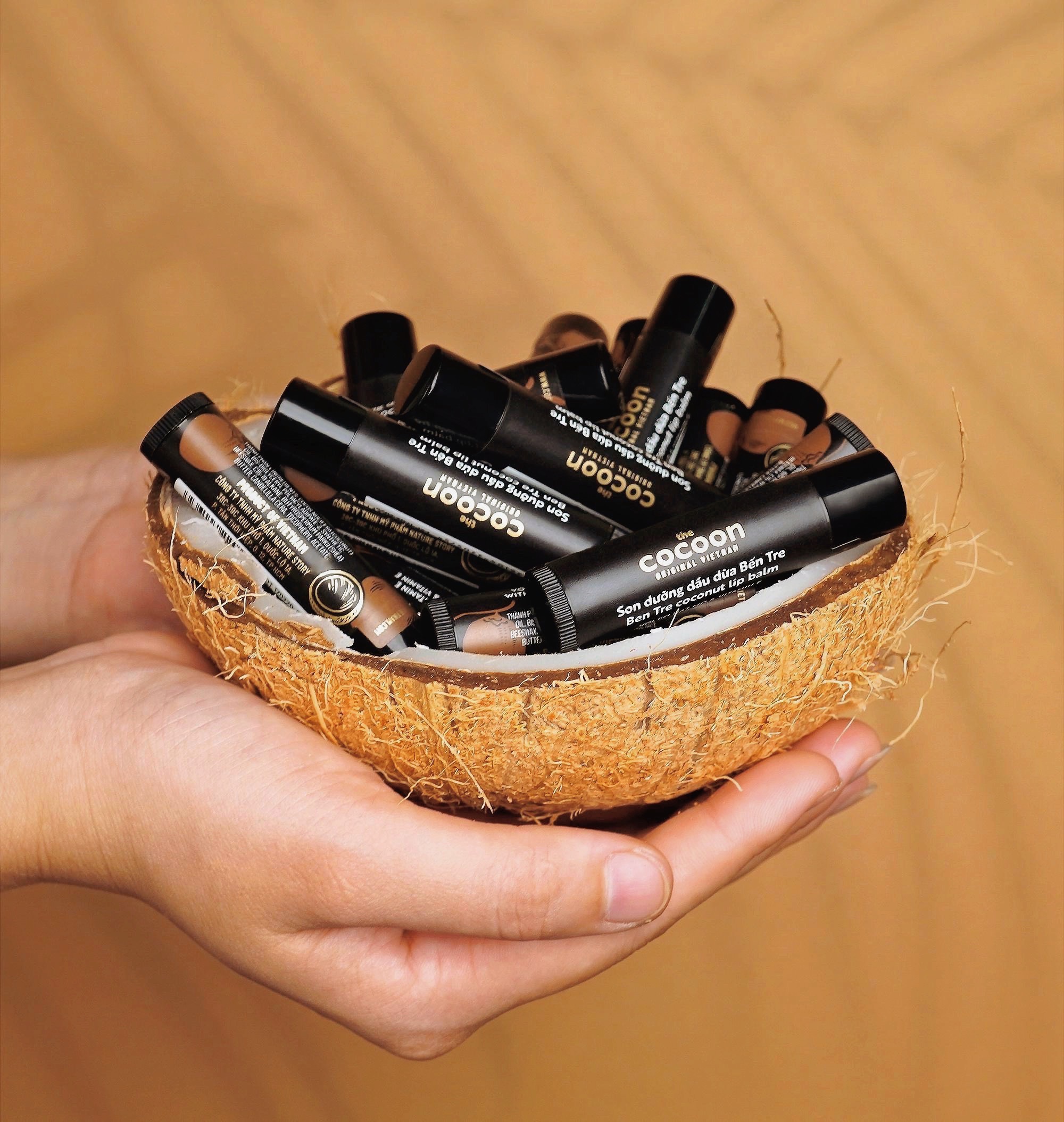 Dầu dừa Bến Tre: với hàm lượng axit lauric cao dầu dừa giữ vai trò như một loại dầu khóa ẩm cho đôi môi luôn mềm mịn, căng mọng