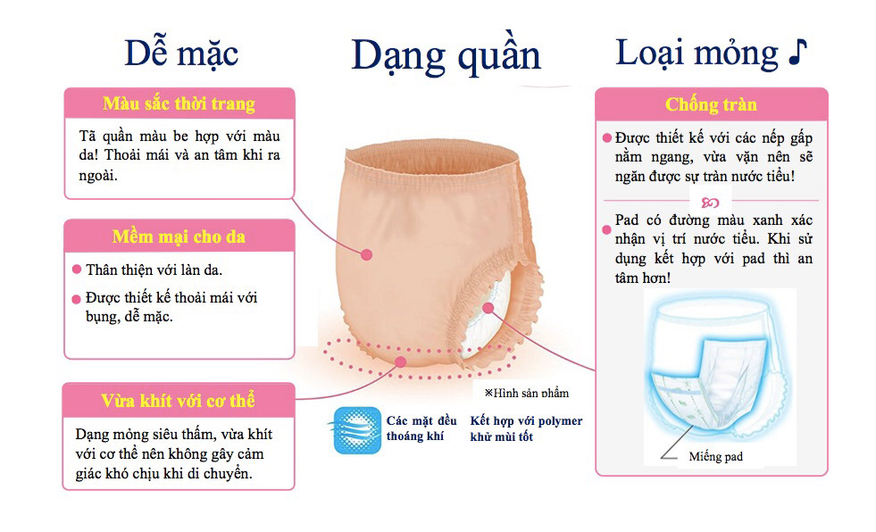 Tã Bỉm dạng quần thích hợp cho người già, người bệnh còn khả năng tự di chuyển, phụ nữ sau sinh