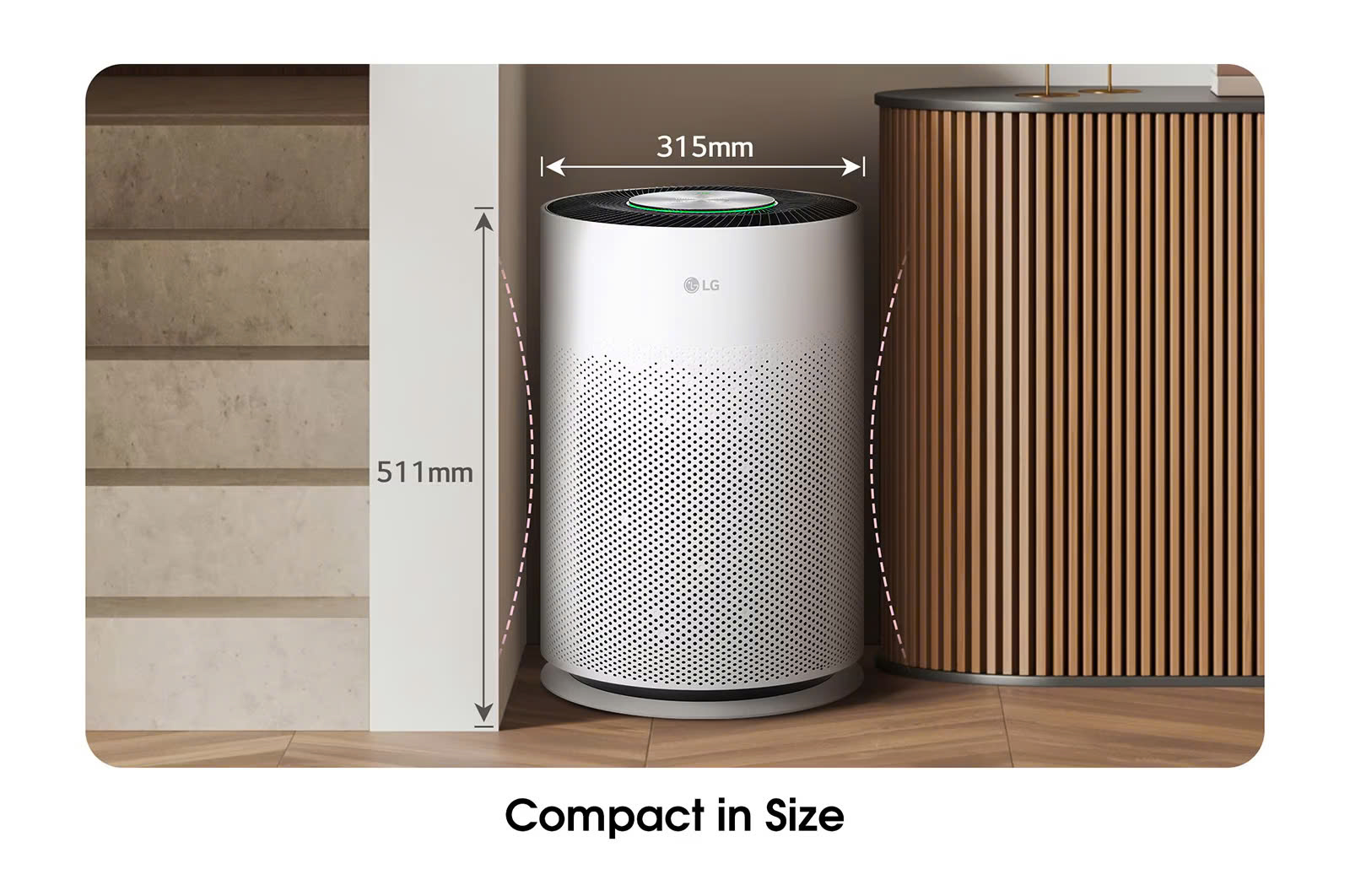 Máy lọc không khí thiết kế nhỏ gọn, kiểu dáng sang trọng, phù hợp cho không gian dưới 13m² Cùng với đó là màu trắng trang nhã, kiểu dáng đơn giản, góp phần tăng thêm phần