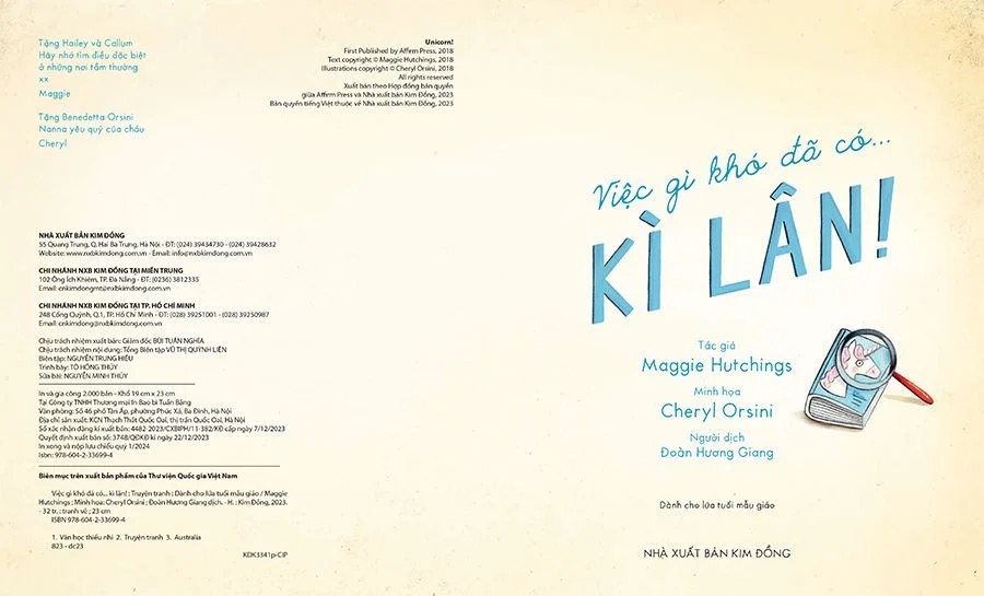 Mua tại TiktokCô bé Lena và bạn thân Luka có thật nhiều bí mật thú vị đang chờ các bạn khám phá! Mời các bạn tìm hiểu sức mạnh và sự diệu kì của tình bạn qua bộ sách VIỆC GÌ KHÓ ĐÃ CÓ, và cùng làm quen với những sinh vật thần thoại cùng những phép nhiệm màu cổ tích! Tác giả Maggie Hutchings là người Úc, cô là một chuyên gia cố vấn, hòa giải gia đình. Các sáng tác của cô hướng tới cả trẻ em và người lớn, nhằm lan tỏa lòng tốt, niềm hi vọng và ý chí vươn lên. Bộ sách được minh hoạ bởi hoạ sĩ Cheryl Orsini với các gam màu tươi tắn, ngọt ngào mang không khí cổ tích đầy trong trẻo. Combo Việc Gì Khó Đã Có… (4 Cuốn) gồm: Việc gì khó đã có… nàng tiên! Việc gì khó đã có… tiên cá! Việc gì khó đã có… rồng! Việc gì khó đã có… kì lân!