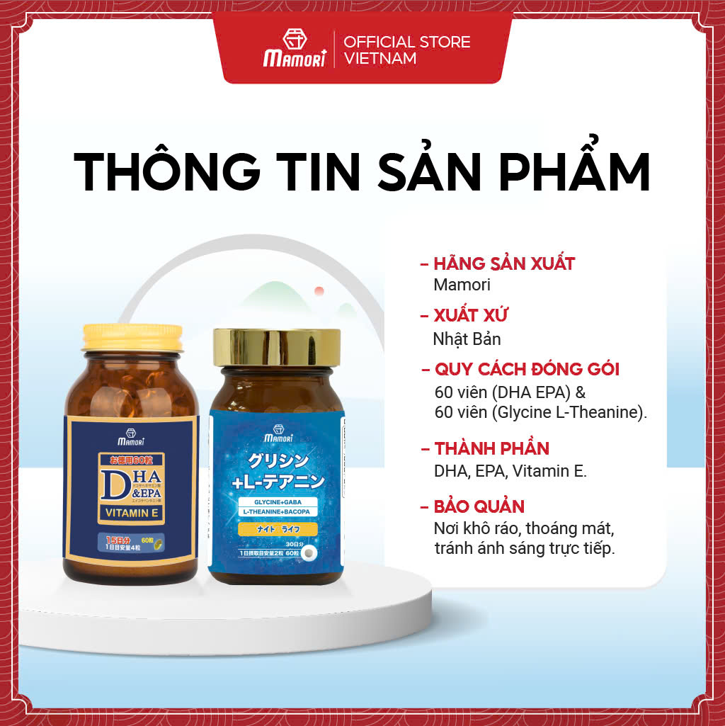 Combo viên uống MAMORI DHA - EPA và Glycine L-theanine là giải pháp hoàn hảo để chăm sóc giấc ngủ và phát triển trí tuệ. Viên uống DHA - EPA từ Nhật Bản hỗ trợ
