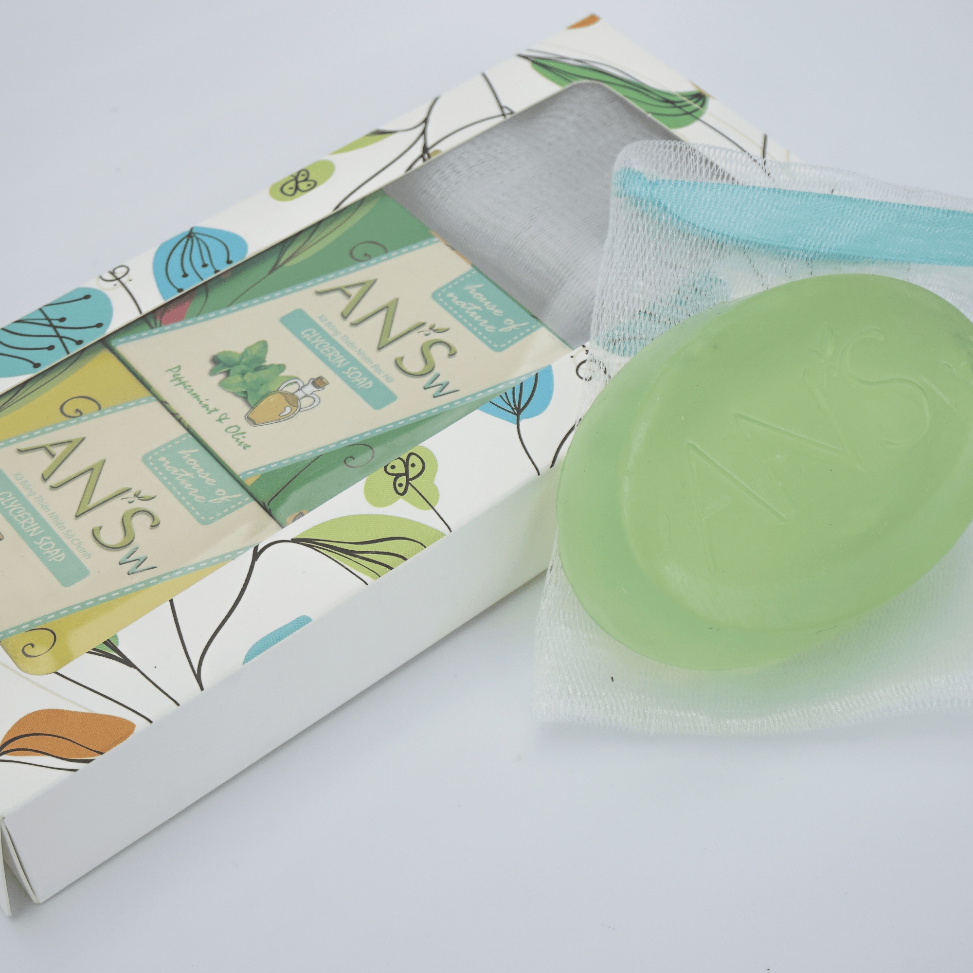 ✨Combo Xà Phòng Thiên Nhiên AN'Sw Tinh Dầu và 2 Lưới tạo bọt ( màu ngẫu nhiên siu xinh )