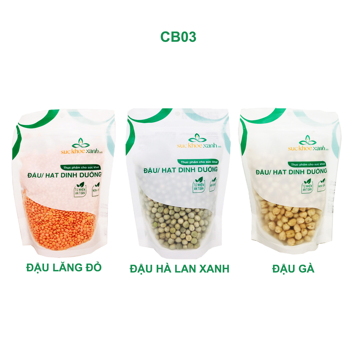 ✨COMBO03: 1 Túi Đậu Gà trắng - 1 Túi Đậu Lăng đỏ và 1 Túi Đậu Hà lan xanh nguyên hạt, Mỗi túi 250g