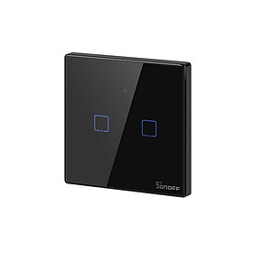 Sonoff TX T3 chuẩn EU 2 cổng do Sonoff Việt Nam phân phối là dòng công tắc WiFi cảm ứng thông minh cho phép tắt/mở, quản lý từ xa qua WiFi trên ứng dụng eWeLink và nút cảm ứng tắt mở trên công tắc.