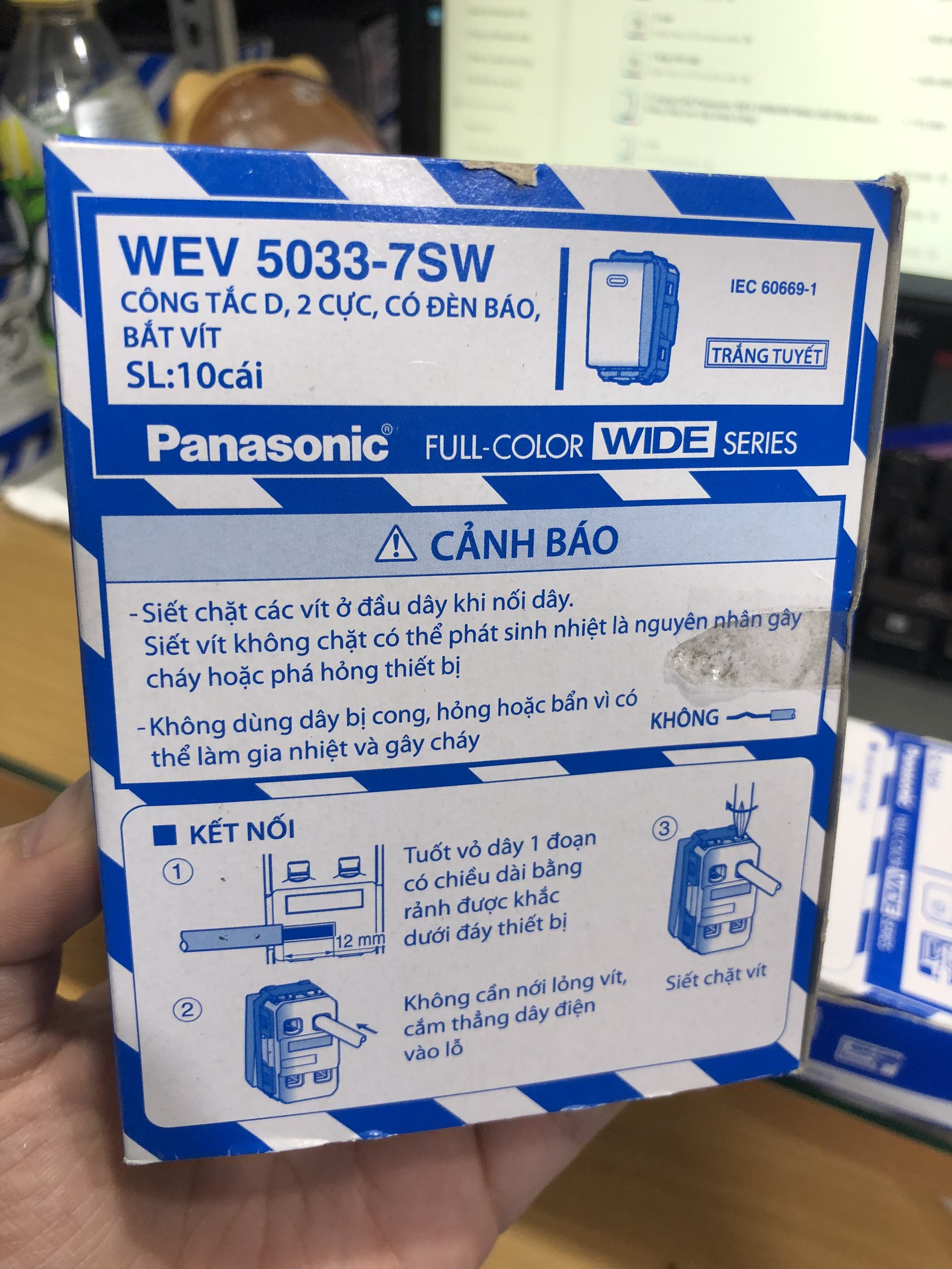 ✨Công tắc D Panasonic WEV-5033-7SW (2 cực) dòng Wide có đèn báo - Hàng chính hãng