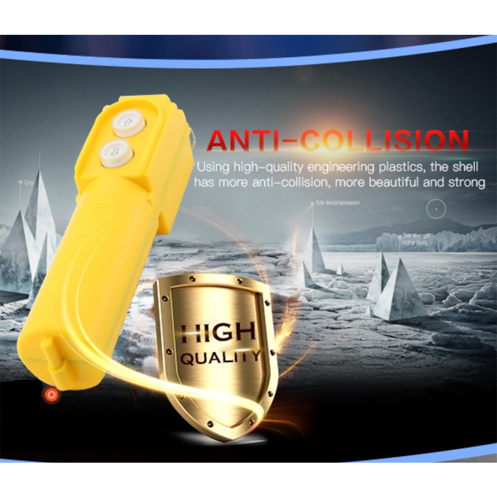 – Nút bấm (Up/Down) Tời điện có cách dùng cực dễ, khi nào muốn cho vật kéo lên, ấn nút up, muốn kéo vật xuống, nhấn nút lên. Nếu bạn muốn vật nâng hay hạ xuống một độ cao nhất định, hãy nhấn nút đó 2 lần. Ví dụ, muốn nâng từ đất lên độ cao A thay vì đích là B thì khi vật gần tới điểm A, ta ấn 2 lần nút nâng vậy là được và ngược lại với cách hạ cũng tương tự