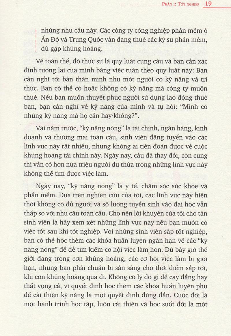 Hy vọng sau khi đọc qua những trang sách này, các bạn sẽ nhìn thấy những cơ hội đang chờ đợi trước mắt mình và nắm bắt được chúng. Hãy nhớ rằng bất kể bạn đang ở đâu trên thế giới rộng lớn này, cơ hội vẫn luôn mở ra cho bạn, chỉ cần bạn sẵn sàng. hãy trân trọng tuổi trẻ của mình, hãy học tập không ngừng với trái tim nhiệt huyết và tấm lòng thiện lương, vì các bạn không chỉ đang gây dựng tương lai của chính mình, mà còn chịu trách nhiệm với tương lai của xã hội, với đất nước bạn đang sống.