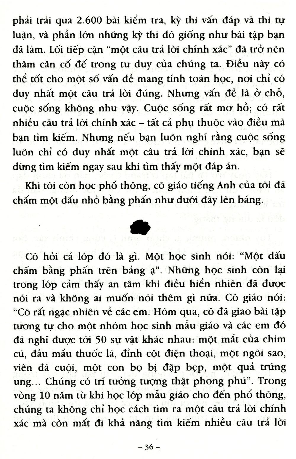 Theo tác giả, cần phải thay đổi lối tư duy đã sáo mòn, cần tiếp cận vấn đề từ nhiều góc độ và bằng nhiều phương pháp khác nhau. Bằng các chiến lược đôi khi đơn giản đến không ngờ mà chính các vĩ nhân cũng-tư duy nhưng lại vô cùng hiệu quả, chắc chắn bạn sẽ tìm ra-thường sử dụng được “một điều gì đó khác biệt”. Các chiến lược đó là: Không hài lòng với chỉ một câu trả lời mà phải tìm ra câu trả lời thứ hai, thứ ba; Xem xét những điều nghịch lý; Đặt ra và trả lời câu hỏi “Nếu… thì sao”, Chọn những viên đá đặt chân; Hãy vui đùa với các ý tưởng; Bắt chước một anh hề; thậm chí Học tập cách tư duy của một đứa trẻ, … Sử dụng văn phong thoải mái như chuyện trò, tâm tình cùng độc giả, tác giả trình bày các vấn đề một cách logic, với những giải thích kỹ càng và lập luận sắc sảo, ông đã dẫn dắt độc giả bước vào một khung trời tri thức thật mới lạ và hấp dẫn…