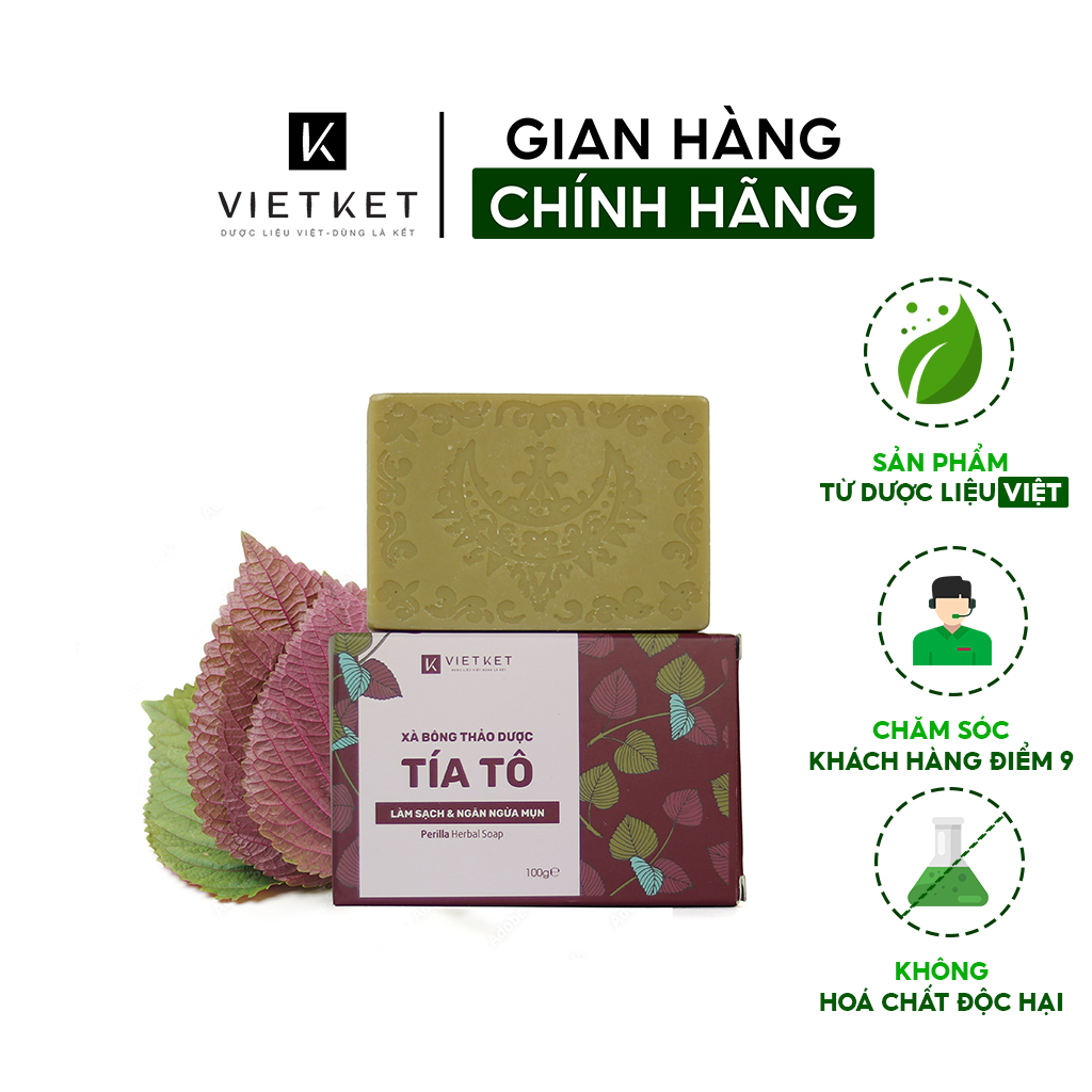 Cục Xà Bông Thảo Dược Tía Tô VIETKET 100g - Làm Sạch, Giảm Mụn Lưng, Sáng Da, Duy Trì Độ Ẩm, Hương Thơm Thảo Dược