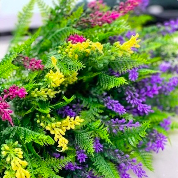 ✨Cụm dương xỉ giả có hoa - Size 27cm - Cây dương sỉ giả, hoa lụa decor trang trí rẻ, bền, đẹp.