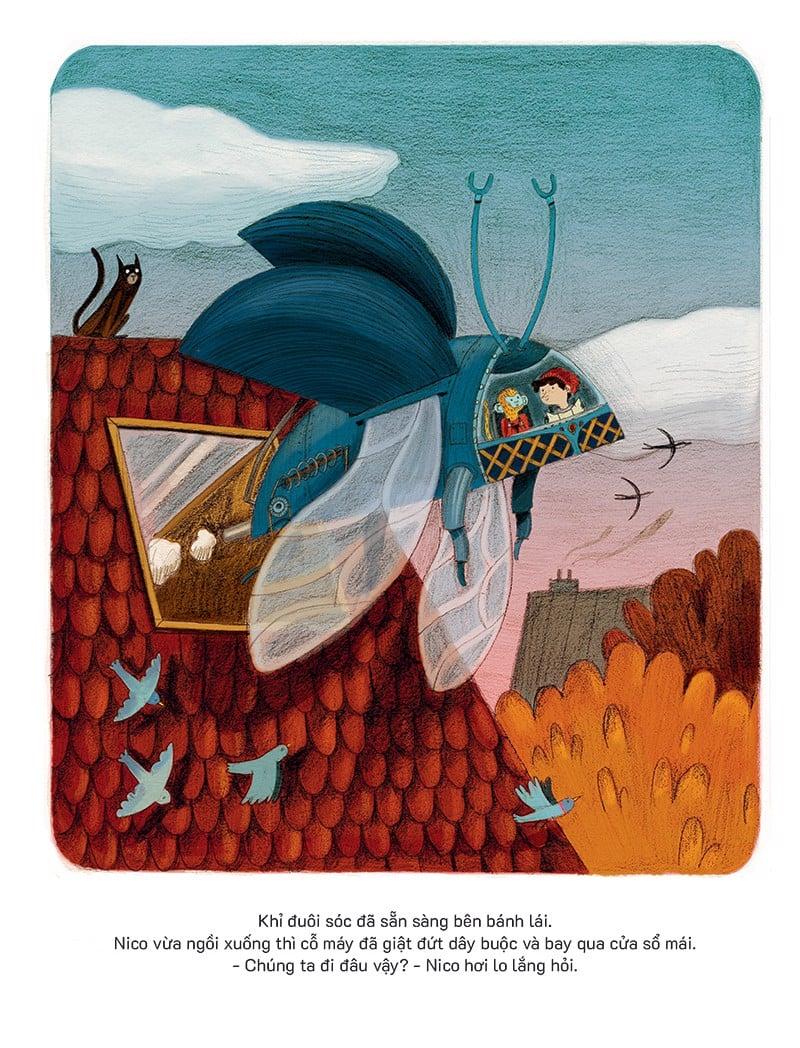 Tối nay, khi Nico đến Xưởng Máy, Khỉ đuôi sóc đã làm xong cỗ máy mới để sẵn sàng cất cánh.