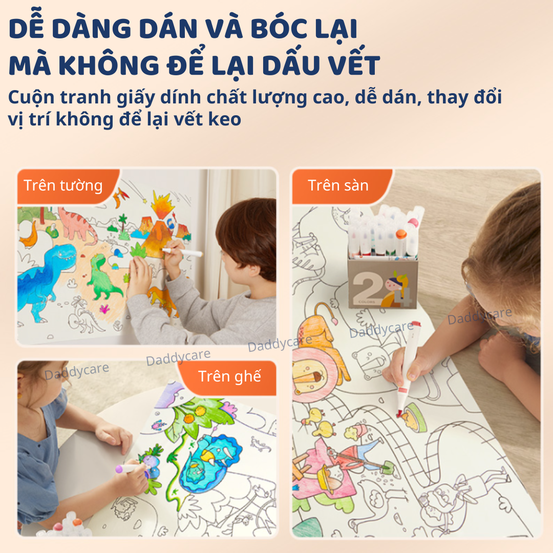 - KHẢ NĂNG SÁNG TẠO VÔ HẠN: Cuộn tranh còn có thể được biến thành nhãn dán tô màu, giúp bé rèn luyện kỹ năng vận động tinh và khả năng sáng tạo vô hạn. Chỉ cần cắt và dán, bé sẽ có những tác phẩm nghệ thuật đầy màu sắc.