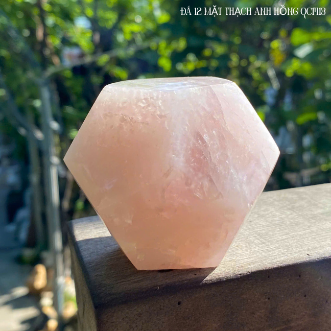 "Bỏ túi" năng lượng yêu thương và an lành với viên đá thạch anh hồng 12 mặt QC1409. Đường kính 8cm, nặng 520gr, chế tác tinh xảo. Biểu tượng của tình duyên, chữa lành và sự