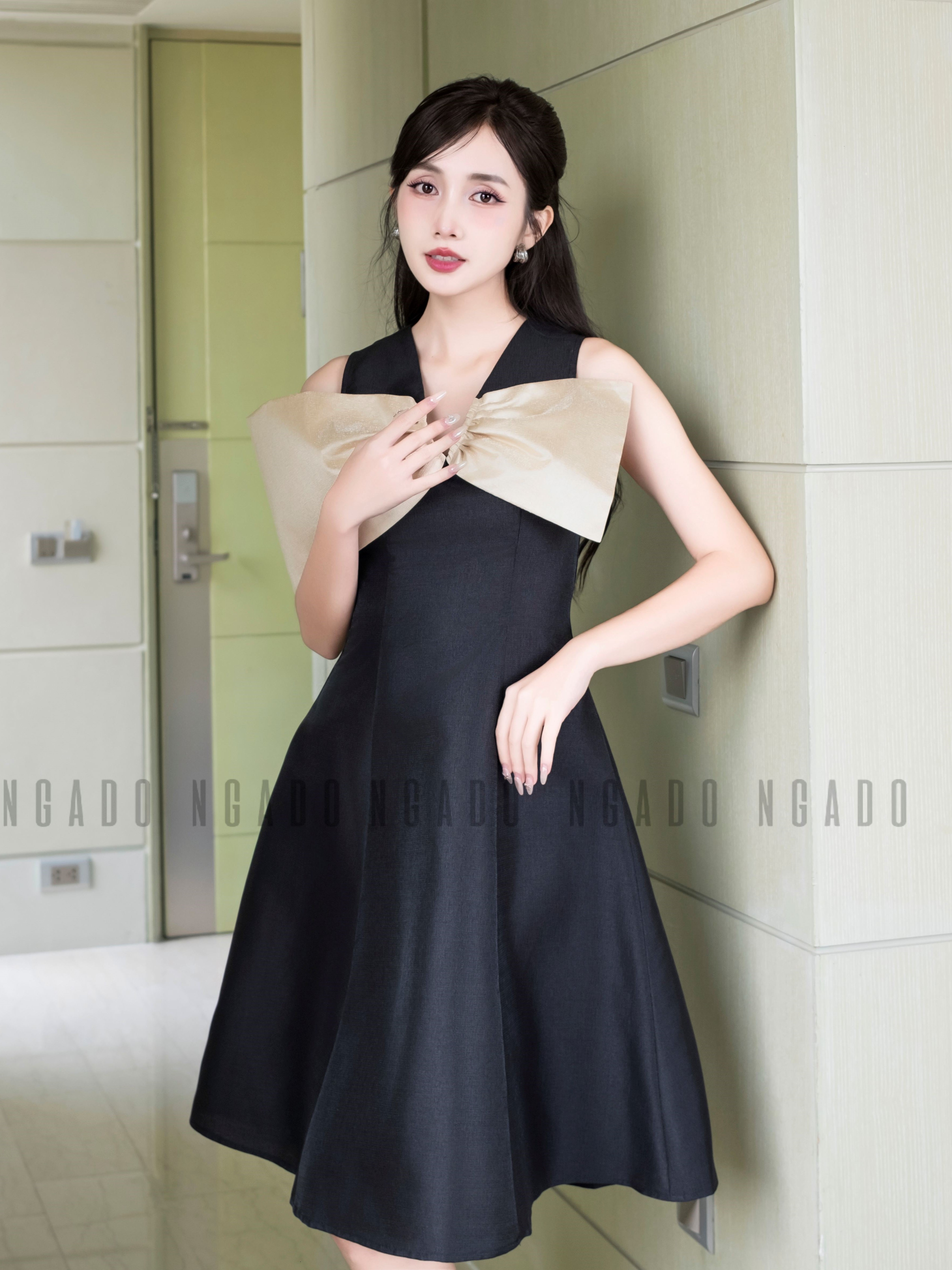 ✨Đầm đen tay nơ NGADO , Đầm xòe , Đầm dự tiệc