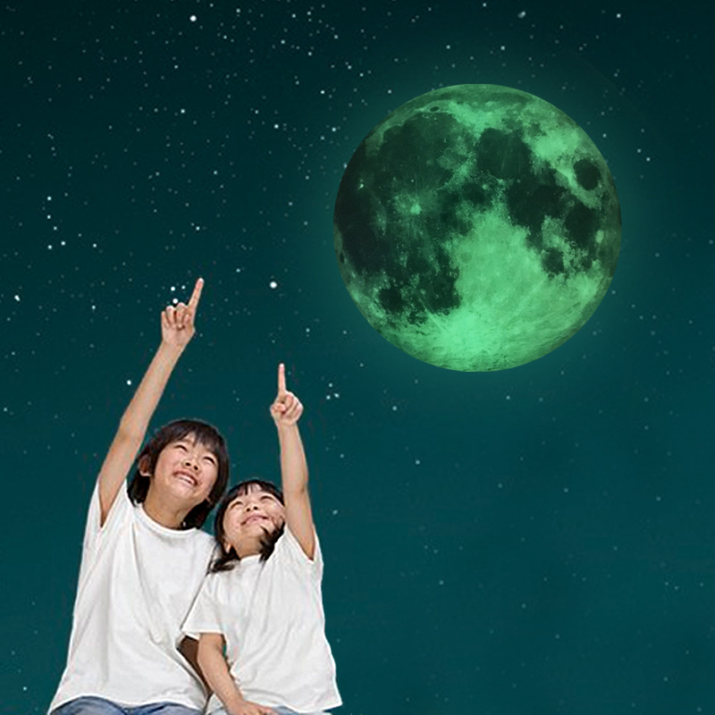 Mặt trăng dạ quang 30 x 30 cm với họa tiết dạ quang nổi trong đêm sẽ mang đến một không gian lung linh cho căn phòng của bạn.Sản phẩm dán được trên nhiều bề
