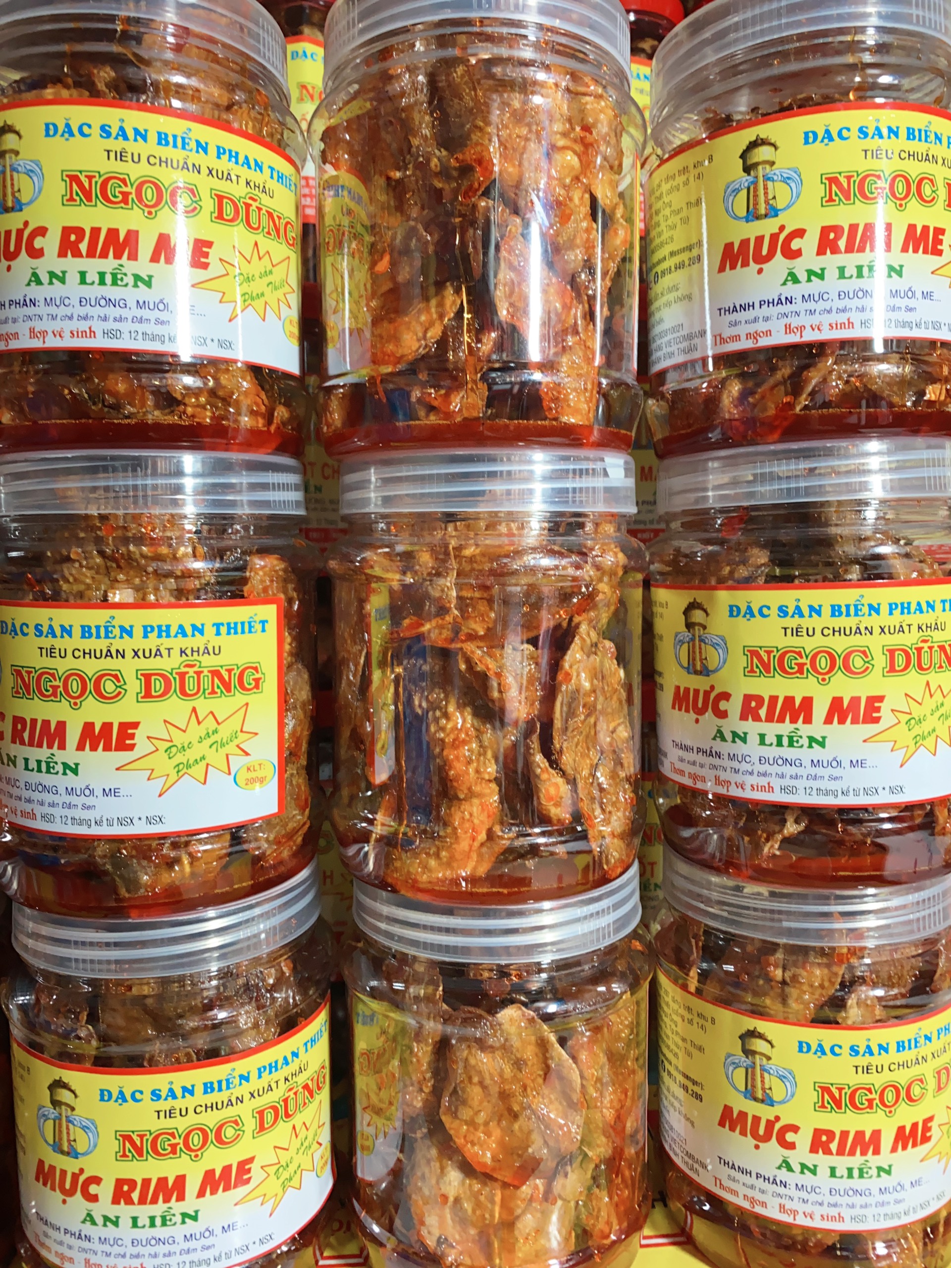 Mua tại TiktokMực rim me ( ăn liền ) hộp 250 gram được chế biến từ mực ống hay mực lá còn tươi xanh tại Cảng cá Phan Thiết tỉnh Bình Thuận là món ăn ngon của Shop Đặc Sản Biển Phan Thiết NGỌC DŨNG. Từ lâu khô mực là món ăn yêu thích của rất nhiều người bởi vị ngọt ngon, đậm đà, mặm mòi đặc trưng riêng của nước biển miền trung quê hương tôi. Đây là món thực phẩm khô rim me rất dể bảo quản trong tủ lạnh nên khách hàng đi du lịch Phan Thiết - Mũi Né thường xuyên mua làm quà biếu cho người thân vì vậy bạn nên mua dự trữ trong tủ lạnh mỗi khi rảnh rổi ăn vật nhâm nhi cả ngày hay khách đến nhà chơi đem ra ăn liền rất ngon và tuyệt vời giới thiệu cho nhiều người cùng mua liên hệ Đặc Sản Biển Phan Thiết NGỌC DŨNG. Sản phẩm mực rim me ngày nào cũng sản xuất nên lúc nào cũng có hàng đảm bảo chất lượng thơm ngon và hợp vệ sinh an toàn thực phẩm. Sức khỏe của bạn- uy tín của tôi. Xuất xứ tại Cảng cá Phan Thiết tỉnh Bình Thuận. Hạn sử dụng 6 tháng kể từ ngày đặt hàng. SHOP CAM KẾT: Đảm bảo sản phẩm khô chất lượng 100% giống mô tả đạt chất lượng an toàn vệ sinh thực phẩm theo tiêu chuẩn Bộ Y Tế. Hình ảnh sản phẩm là hình thật do shop tự chụp màu sắc tự nhiên. Sản phẩm có sẳn giao hàng ngay khi nhận được đơn đặt hàng của quý khách. Giao hàng trên toàn quốc.
