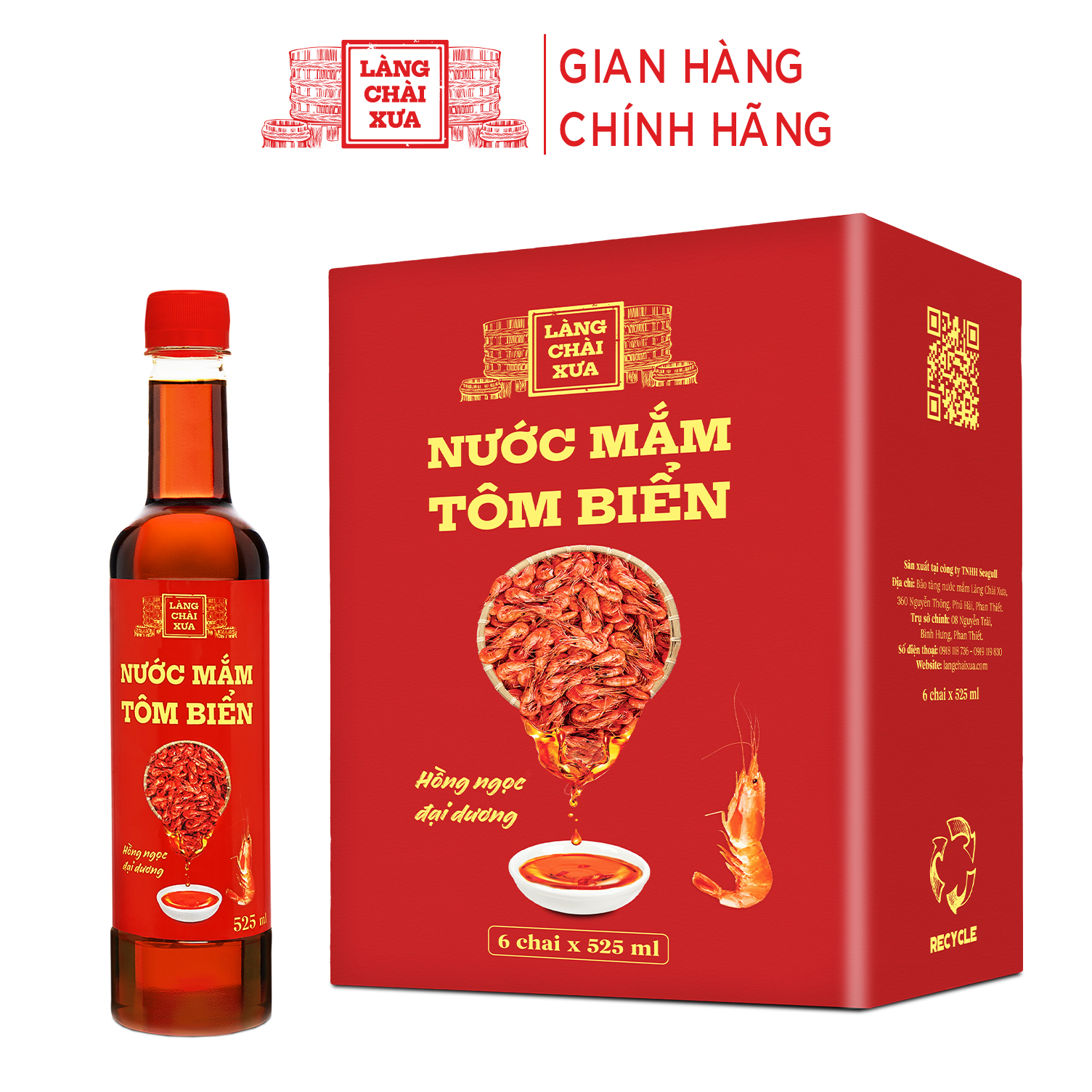 [Thùng 6 chai] Nước mắm tôm biển Làng Chài Xưa 525ml/chai Hồng Ngọc Đại Dương 300 năm truyền thống