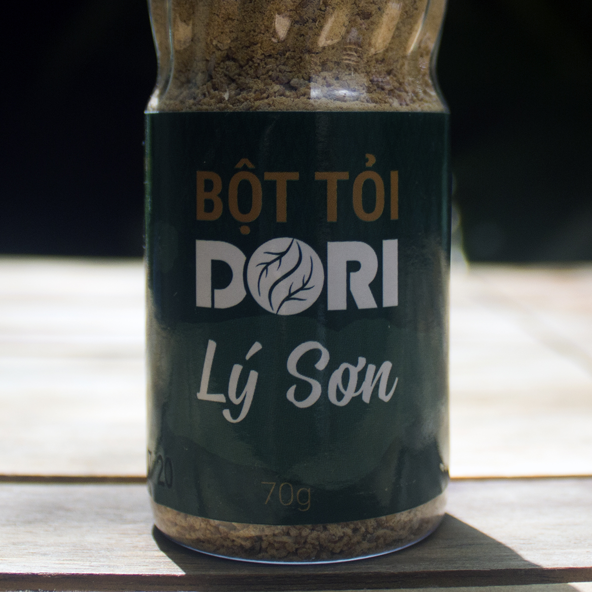 Tỏi Lý Sơn sau khi được thu hoạch từ ruộng tỏi đạt chuẩn sẽ tiến hành phơi sấy đủ tiêu chuẩn lưu trữ.Chúng tôi chọn lọc những củ tỏi chất lượng sau đó tiến hành sấy khô chậm trong hơn 24h và nghiền thành bột.Sản phẩm là bột tỏi Lý Sơn Dori nguyên chất nên mùi thơm rất đặc trưng phù hợp làm gia vị, tẩm ướp thực phẩm, làm nước chấm,ài ra có thể dùng bột tỏi Lý Sơn Dori để hòa với nước ấm uống mỗi sáng, tối để hỗ trợ sức khỏe, tăng sức đề kháng, chống viêm, giảm cholesterol xấu trong thành mạch máu, hỗ trợ bệnh tim mạch, tiêu hóa, thấp khớp,ản phẩm được sản xuất tại Công ty cổ phần Dori, Thôn Đông, An Vĩnh, Lý Sơn, Quảng Ngãi.