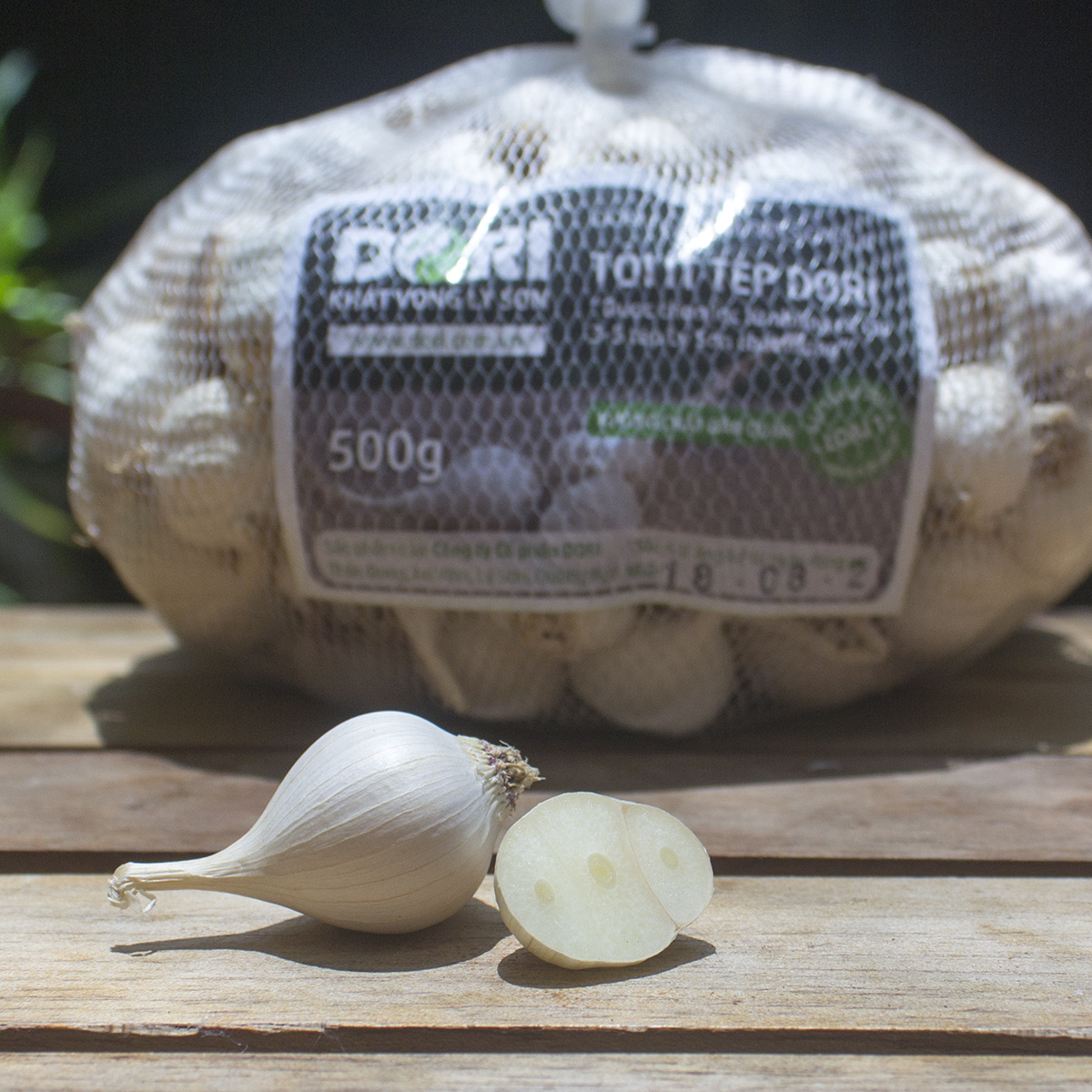 Với sản phẩm tươi sống, trọng lượng thực tế có thể chênh lệch khoảng 10%. - 100% tỏi được trồng tại đảo Lý Sơn, Quảng Ngãi. Dori thu mua trực tiếp từ nông hộ. -