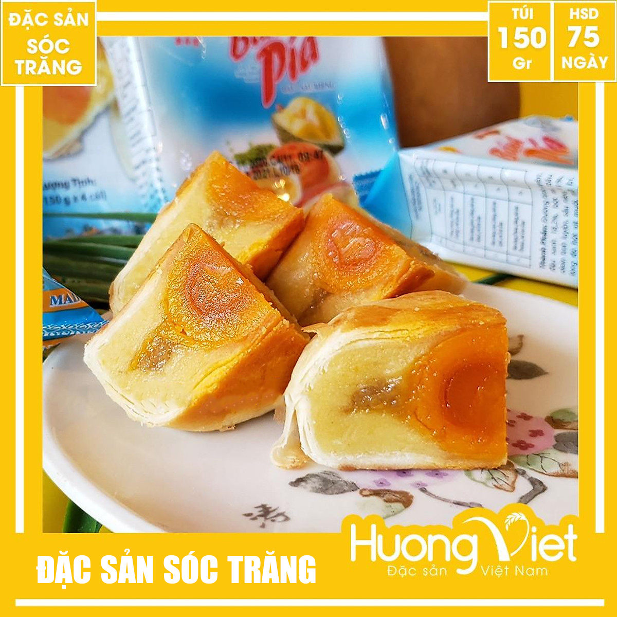 ✨Đặc Sản Sóc Trăng - Bánh Pía Sóc Trăng Đậu Xanh Sầu Riêng 1 Trứng Tân Huê Viên Đặc Biệt, Bánh Pía Trứng Muối 150G