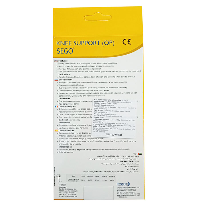 Đai đầu gối | Đai đầu gối hở vùng bánh chè Dyna    Đặc điểm nổi bật:   -Hàng nhập khẩu cao cấp chính hãng theo tiêu chuẩn Châu Âu -Chất liệu co giãn, thoải mái cho người sử dụng -Thiết kế thông minh hạn chế sự gập cong đầu gối -Hỗ trợ điều trị viêm khớp, bong gân đầu gối       Đặc điểm sản phẩm:   -Chất liệu co giãn, êm, thoải mái. -Thiết kế có hở phần bánh chè với đệm tròn mềm cho phép linh hoạt hơn xung quanh đầu gối. -Hệ thống khóa gập tự động hạn chế sự gập cong đầu gối dưới 60 độ.   Chỉ định sử dụng sản phẩm   -hỗ trợ Điều trị các chấn thương nhẹ xương bánh chè. -Hỗ trợ điều trị sau khi phẫu thuật xương bánh chè, tái tạo dây chằng -Hỗ trợ điều trị viêm khớp, mãn tính thoái hóa khớp, căng cơ, bong gân đầu gối, tràn dịch khớp.       Sản xuất và nhập khẩu:   Sản phẩm đạt tiêu chuẩn CHÂU ÂU do hãng DYNAMIC của Ấn Độ sản xuất xuất khẩu trên 35 nước trên thế giới bao gồm Anh, Mỹ, EU, châu Á   Cách lấy size:  Đo chu vi đầu gối (cm)   SIZE Đo chu vi đầu gối (cm) S 30 - 34 cm M 34 - 37 cm L 37 - 41 cm XL 41 - 44 cm XXL 44 - 46 cm