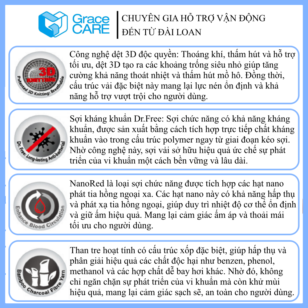 Thương hiệu: Grace Care - Nhà cung cấp chuyên nghiệp các sản phẩm chỉnh hình, bảo hộ thể thao tại Đài Loan. Sản xuất: Đài Loan Sản phẩm đạt tiêu chuẩn y tế ISO 13485