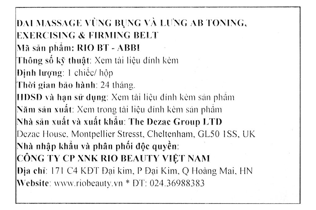 ✨Đai massage bụng Rio BT-ABBI-PU - Hàng chính hãng