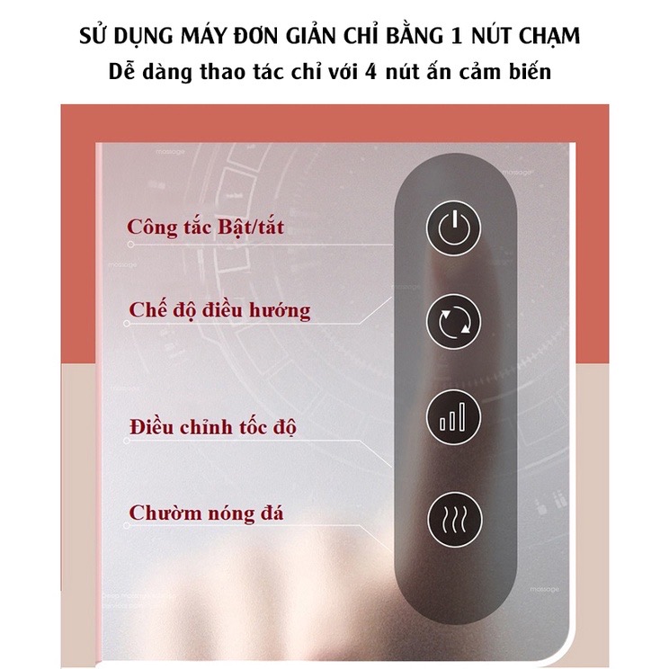 Gối Massage Đa Năng Gối massage được cải tiến với nhiều tính năng riêng biệt mà các gối massage cùng dòng chưa có được. Gối massage được chia thành 3 phần massage với chức năng
